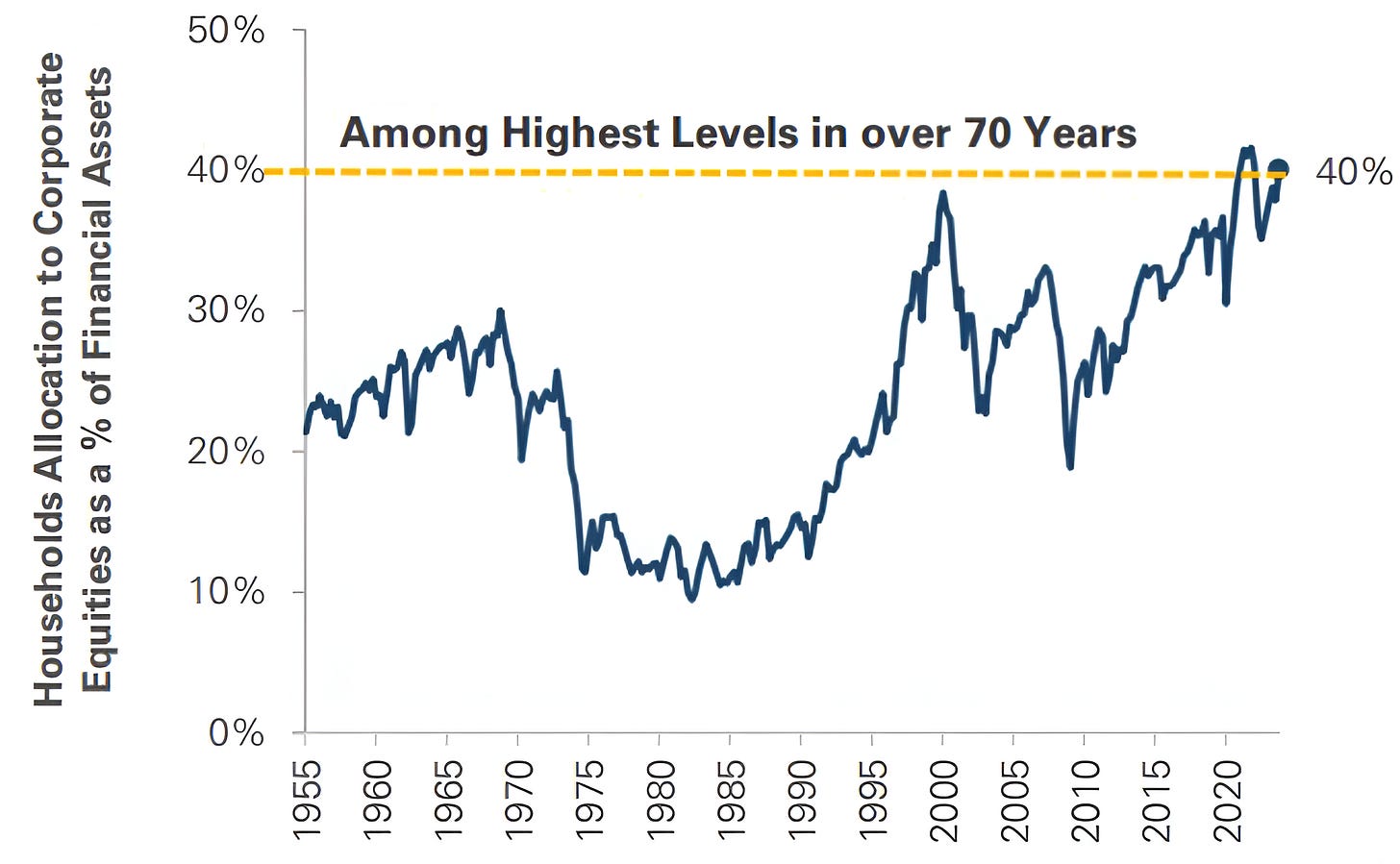 At 40%, the current allocation to equities is among the highest levels in over 70 years.