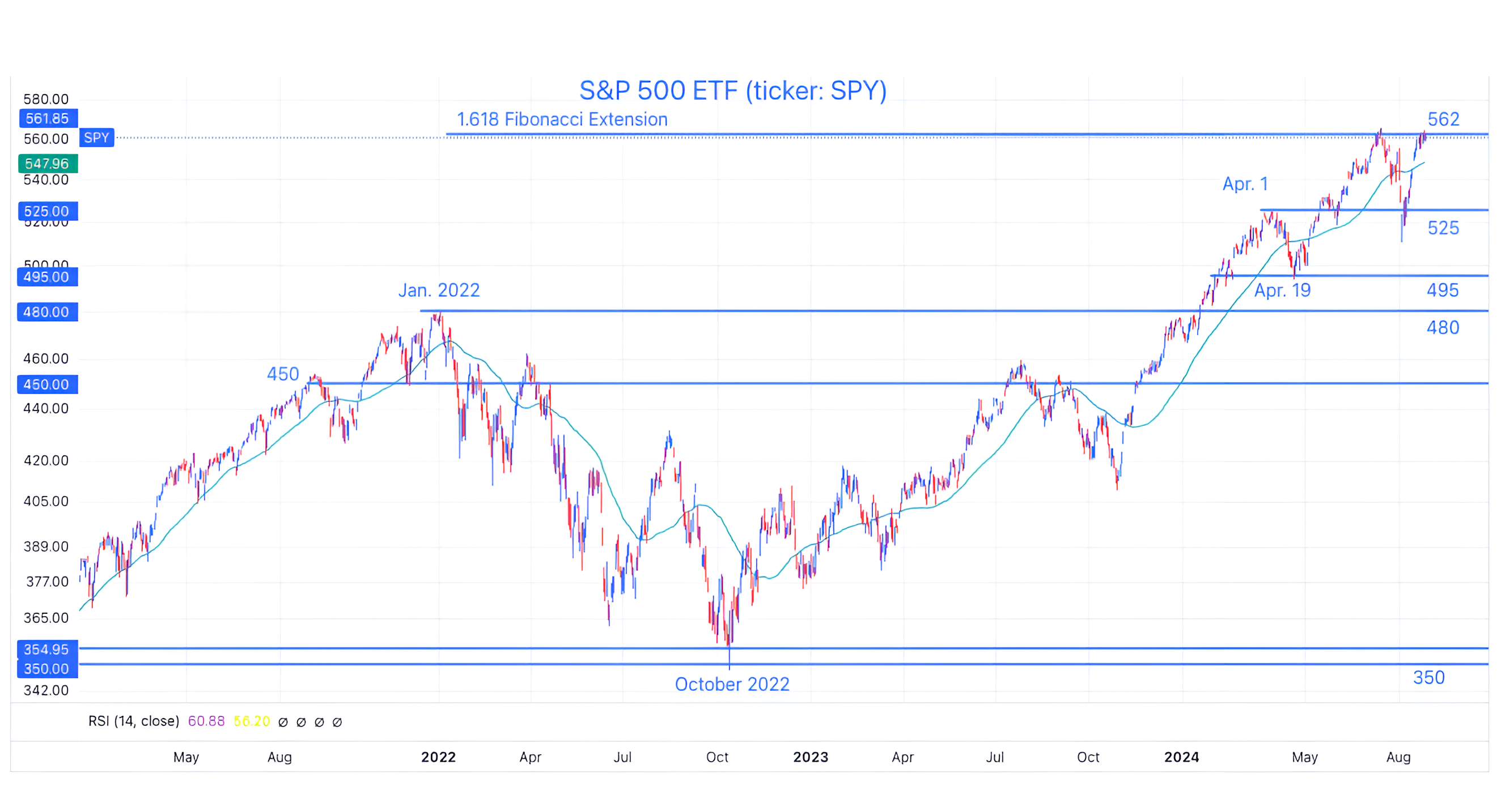 With the S&P 500 ETF back to its mid-July high, we question how much further it can go without a pause.
