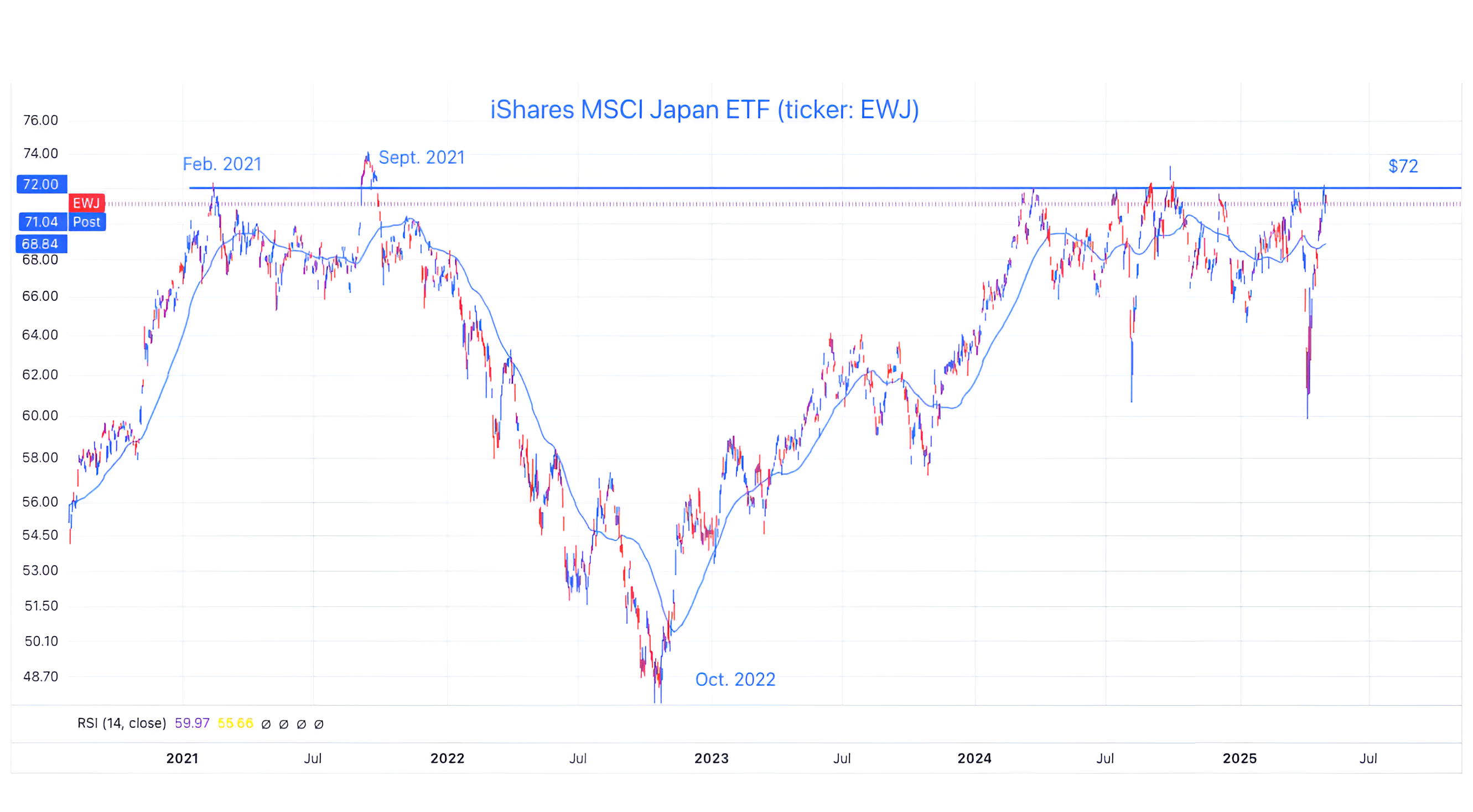 The chart above shows the MSCI Japan ETF (ticker: EWJ).