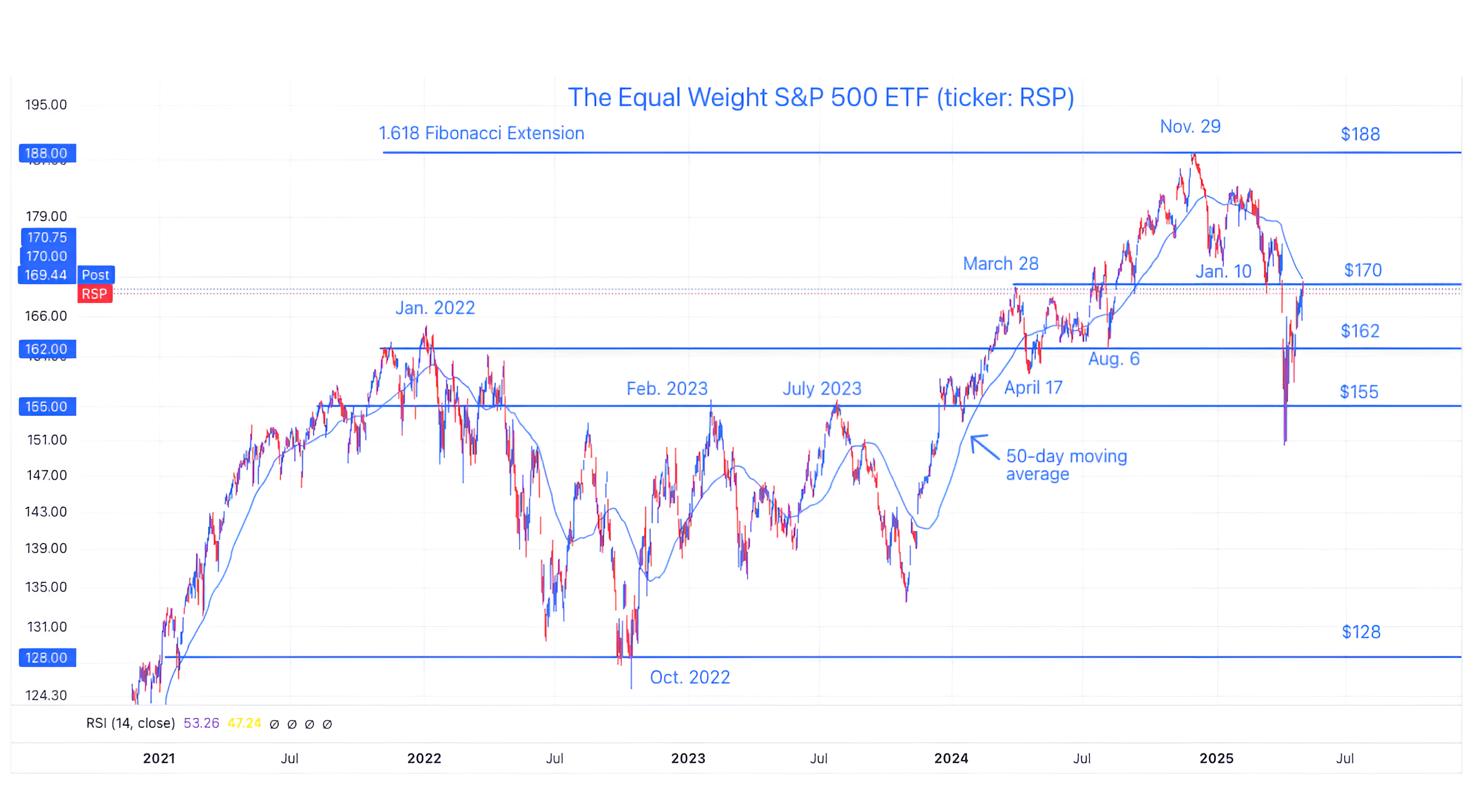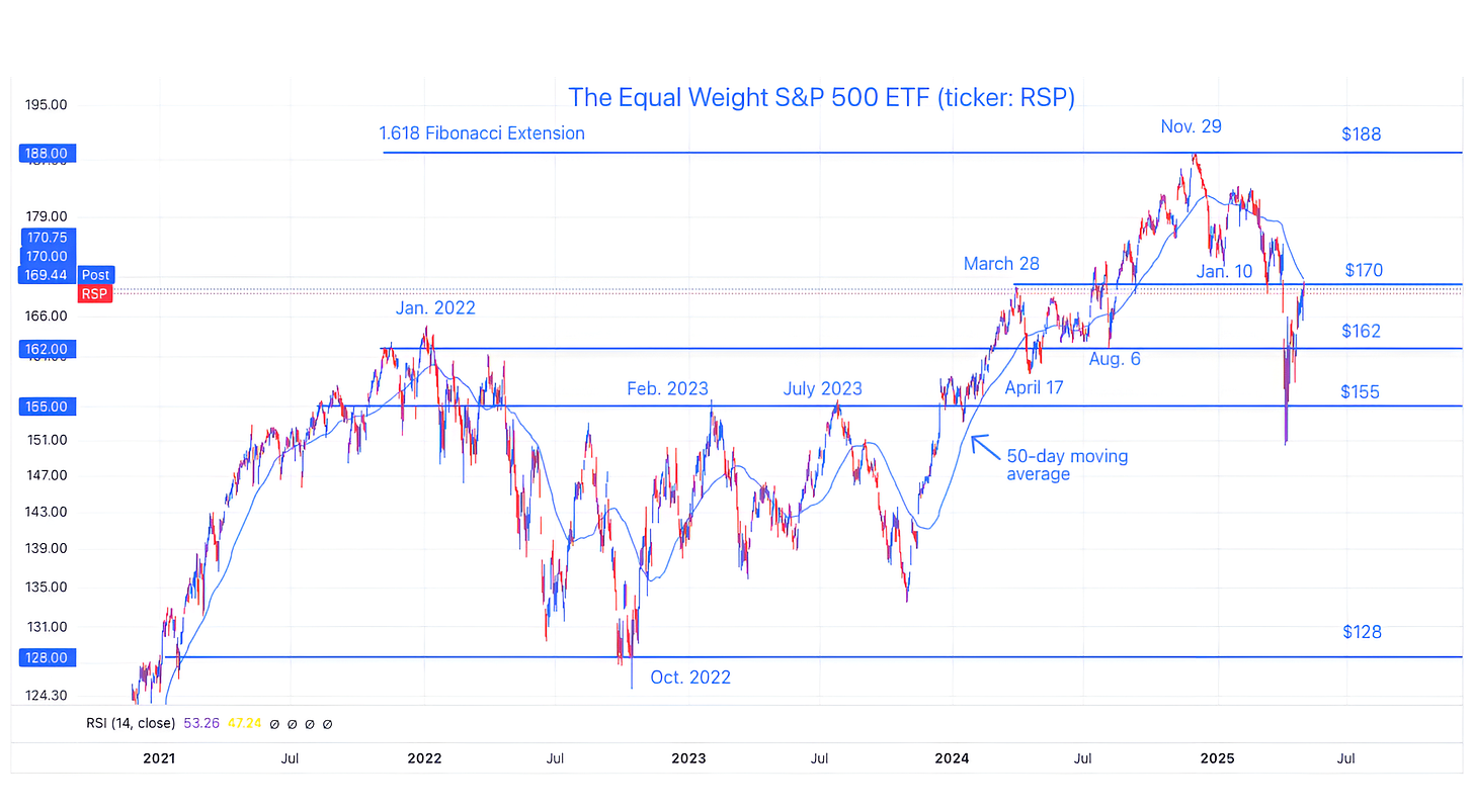 The chart above shows the Equal Weight S&P 500 ETF (ticker: RSP).