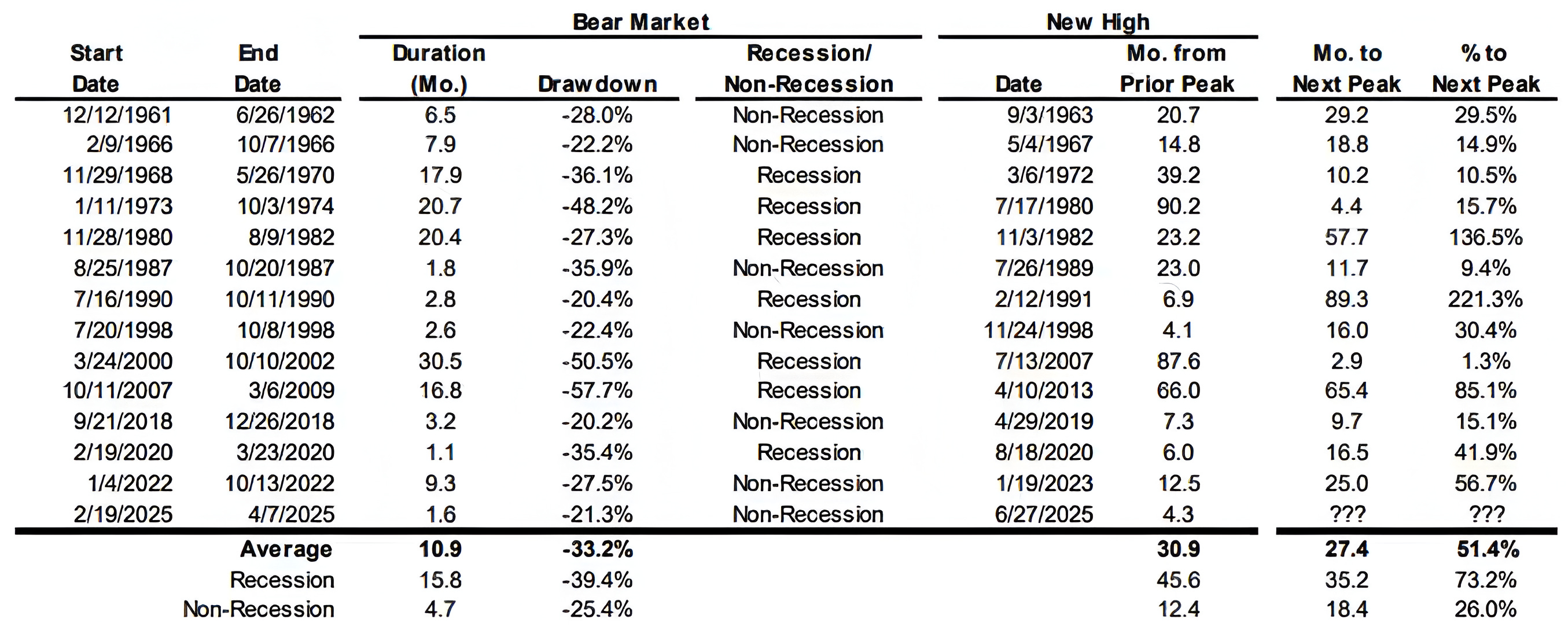 The chart above shows the S&P 500 Performance after a 20%+ drawdown period has recovered to a new high.