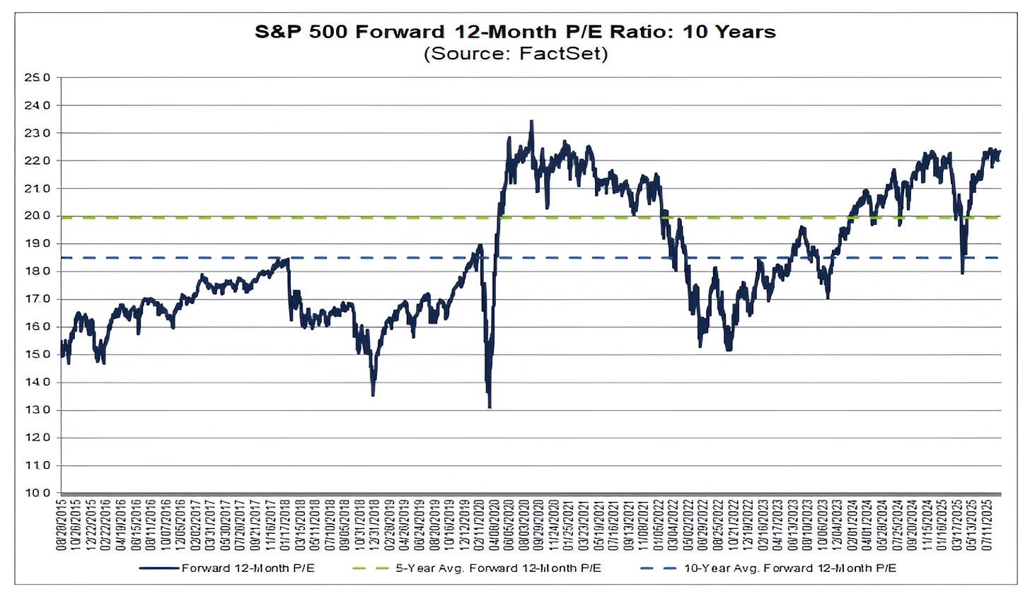The S&P 500 is currently trading near its highest valuation outside of the post-covid period (when the markets rallied before analysts recognized earnings growth) of the past 10-years.