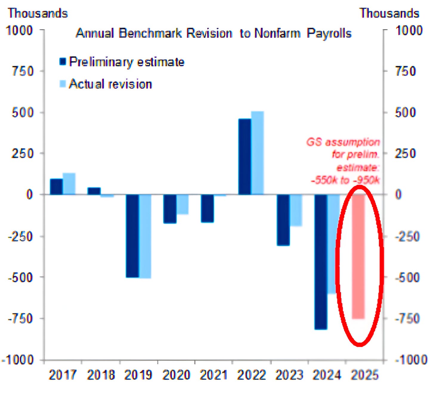One of the most thought provoking chart that I’ve seen over the past two weeks - or for a while, for that matter - is Goldman Sachs’ estimate of the benchmark employment revision that will be released on September 9th.