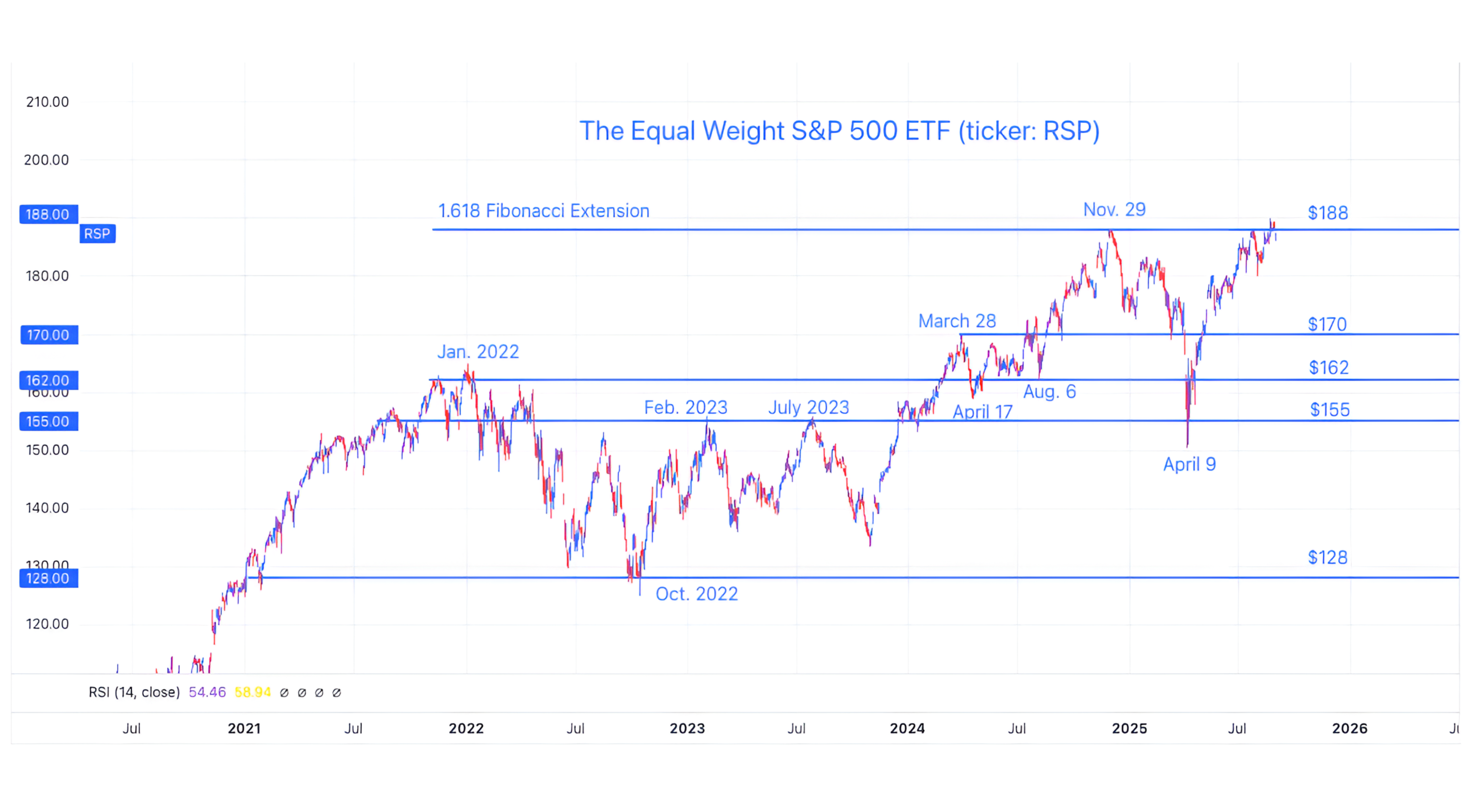 The chart above shows the Equal Weight S&P 500 ETF (ticker: RSP).